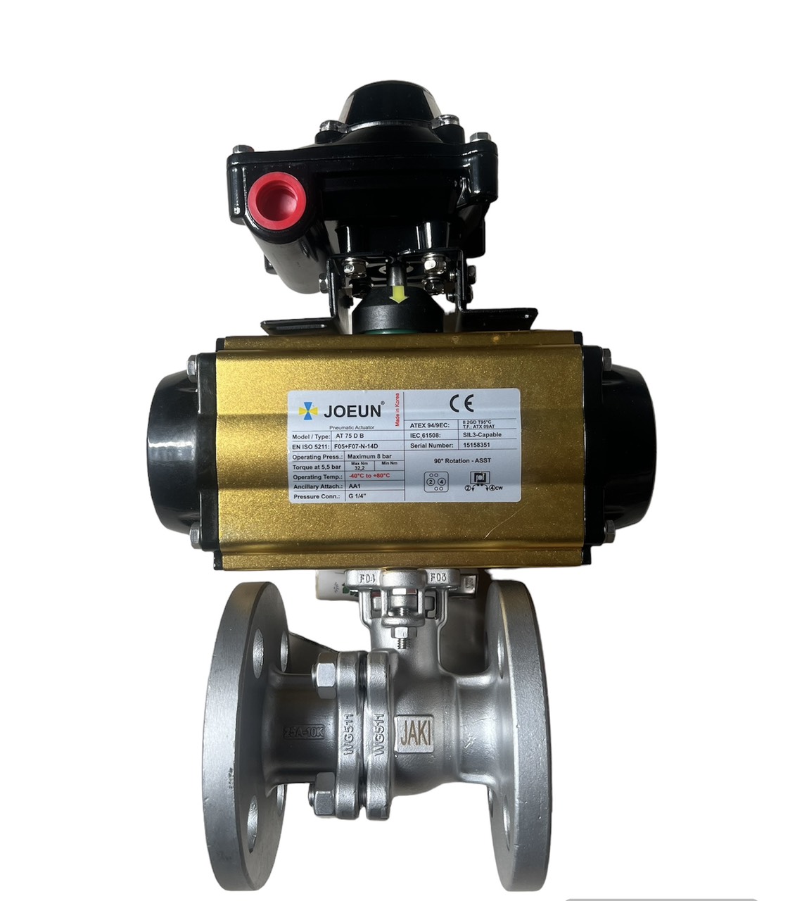Bộ điều khiển khí nén JOEUN có cấu tạo khá đơn giản bên ngoài là lớp vỏ được làm bằng hợp kim nhôm cao cấp, bên trong là các bộ phận như pistong, bánh răng, trục, lò xo có nhiệm vụ thay thế người vận hành điều khiển quá trình đóng mở của quả bi nằm bên trong thân van bi. Bộ điều khiển khí nén có 2 loại điều khiển như: