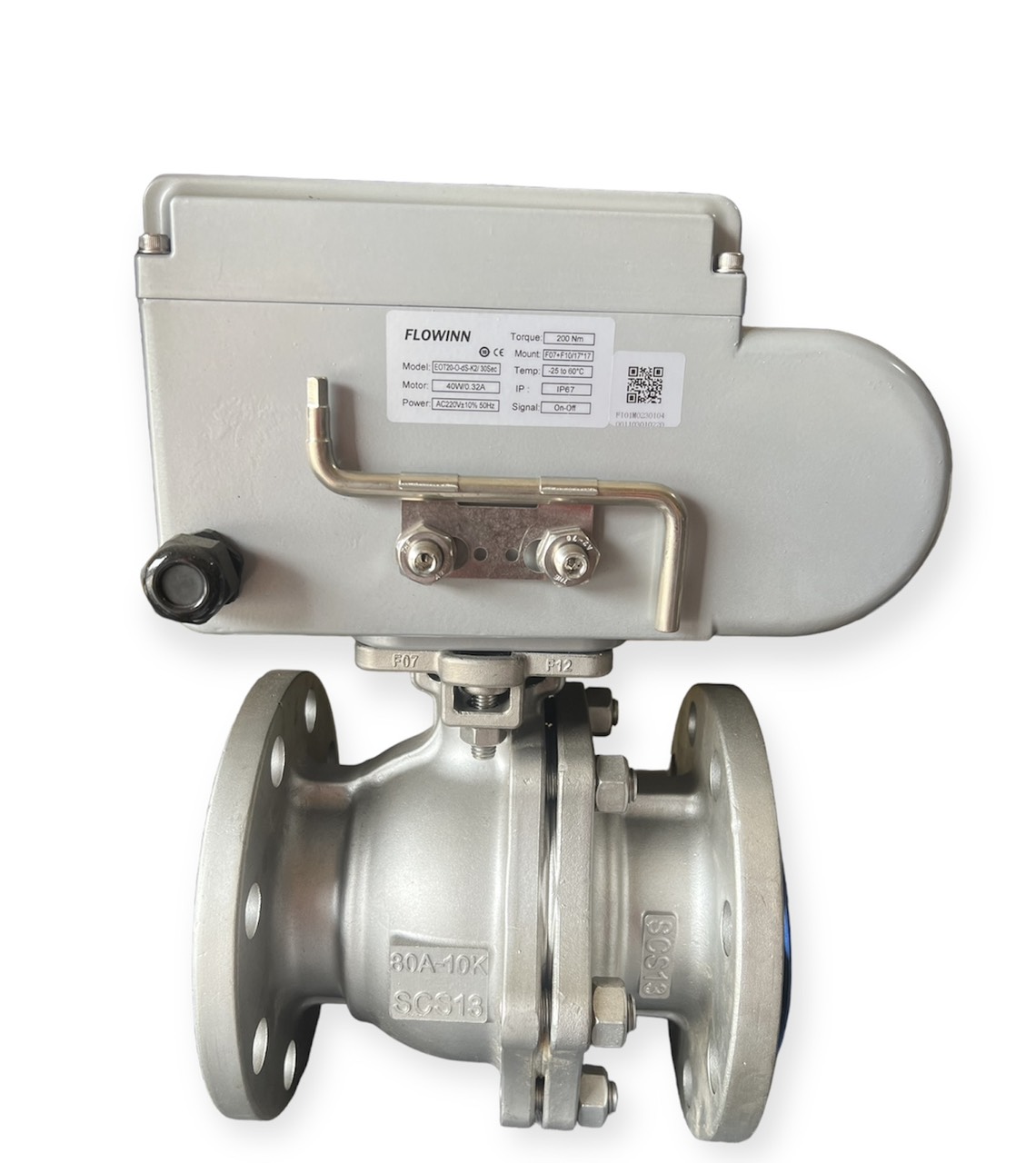 Van bi mặt bích JIS10K đóng mở điện Flowinn có nguyên tắc hoạt động cơ bản không khác so với các dòng van bi điều khiển điện hiện nay. Chúng ta có thể hiểu ngắn gọn van bi mặt bích điều khiển điện là van bi mặt bích điều khiển điện được kết nối với đường ống bằng mặt bích . Van bi mặt bích điều khiển điện có kích cỡ từ DN15, DN20, DN25, DN32, DN40, DN50… đến DN200.