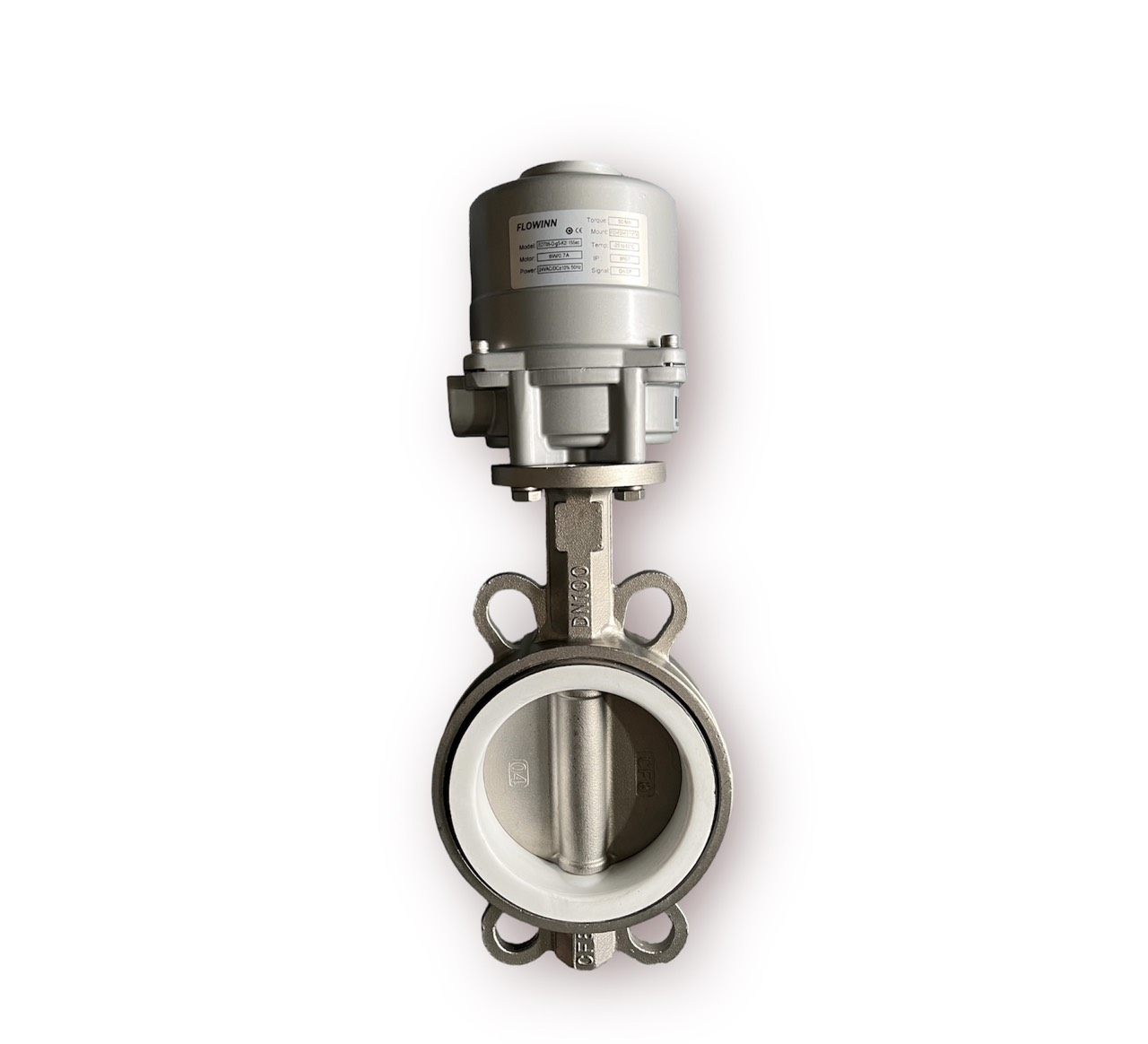 Van bướm mặt bích đóng mở bằng điện là một thiết bị van tự động, Motor điện có các bánh răng và momen xoắn, dưới tác dụng của dòng điện các bánh răng xoay làm trục van bướm quay theo qua đó tạo cơ chế đóng mở van.