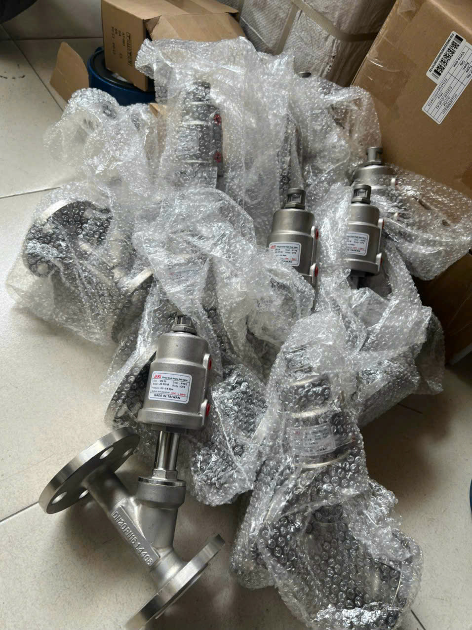 Van chữ Y khí nén Jaki được cấu tạo từ vật liệu inox 304 hoặc inox 316, đảm bảo độ bền cao và khả năng chống ăn mòn tốt. Van có các kích thước đa dạng như DN25, DN32, DN40, DN50, DN65, DN80, DN90, DN100, phù hợp với nhiều loại đường ống khác nhau. Nguyên lý hoạt động của van dựa trên việc sử dụng khí nén để điều khiển việc đóng mở, giúp kiểm soát lưu lượng chất lỏng hoặc khí trong hệ thống một cách chính xác và hiệu quả.